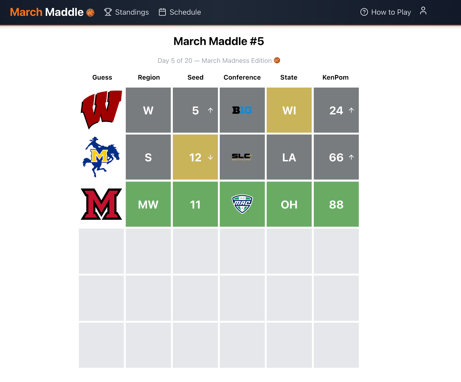 Limited Time: I’m only going to maintain this through the end of March Madness (instead of indefinitely like NBA-dle).